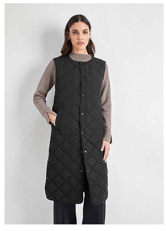Lisage oma garderoobi stiili ja mugavust Hechter Paris õhukese tepitud vestiga, mis on ideaalne igapäevaseks kandmiseks ja kergeteks külmadeks päevadeks. Must vest on varustatud trukkide ja praktiliste taskutega, pakkudes nii elegantsi kui ka funktsionaalsust. Erilised trukkidega külgedel olevad lõhikud toovad esile veelgi rohkem liikumisvabadust ja aitavad rõhutada vesti modernset disaini.