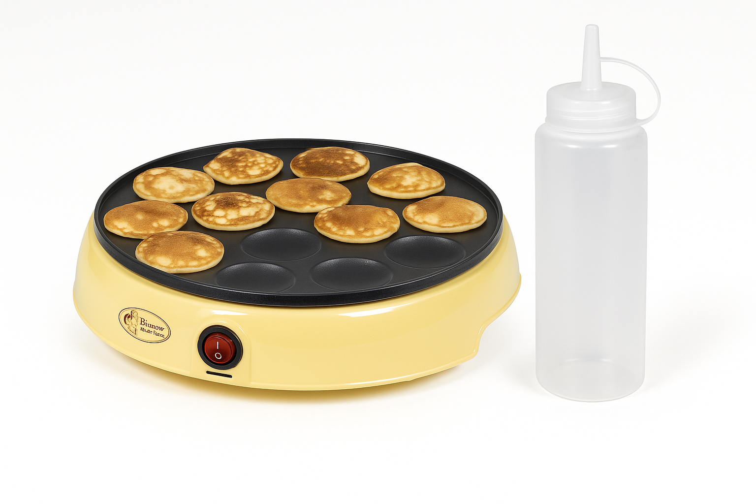 Kvaliteetne minipannkoogi masin soojeneb kiirelt ning teeb korraga 14 imelist kuldpruuni minipannkooki.