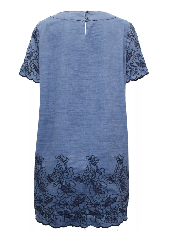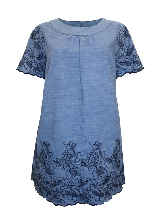 Puhtast puuvillast lilledega tikitud lühikeste varrukatega tuunika.